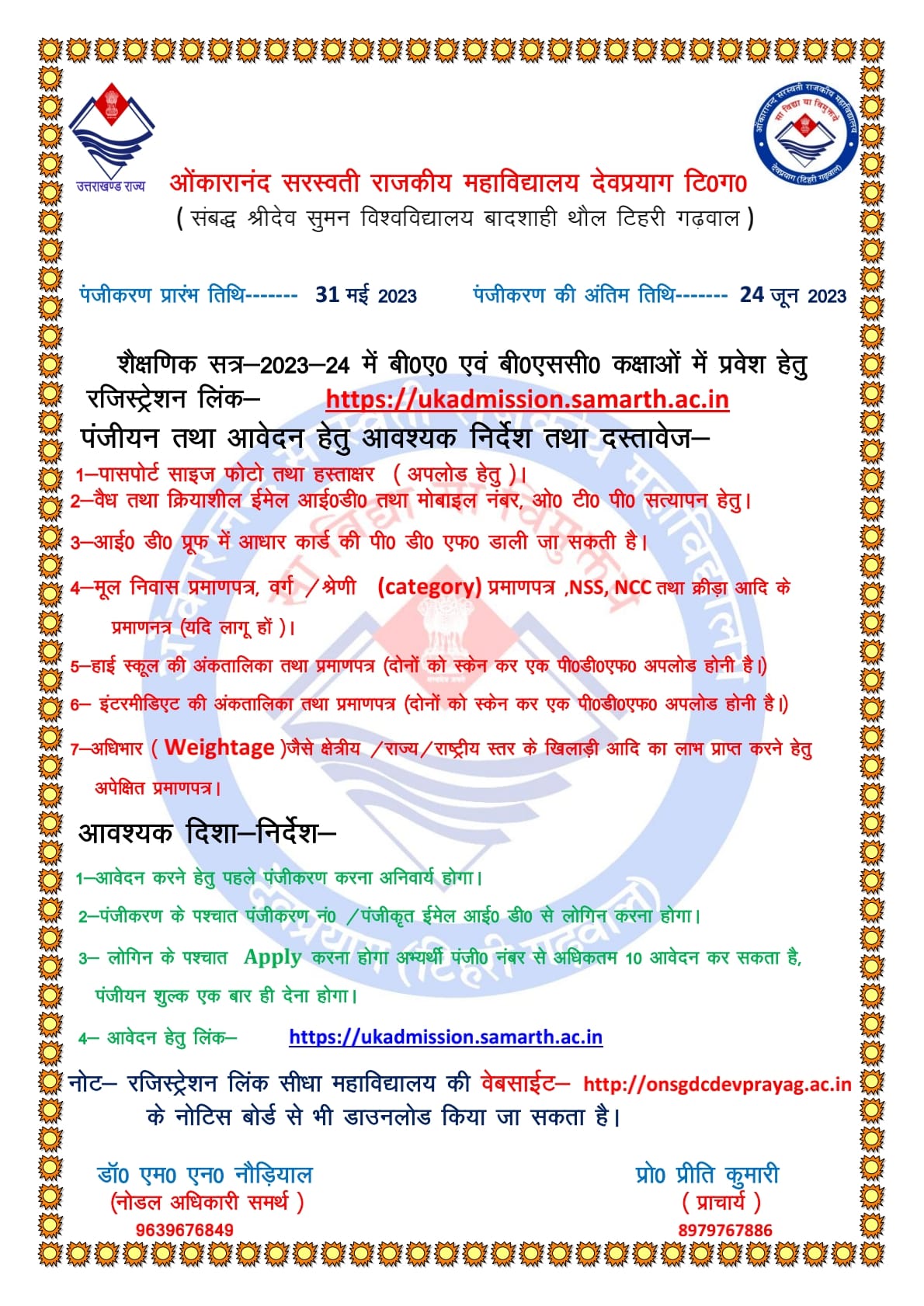 Since academic session 2018-19, the college is affiliated to Sridev Suman University, Badsahithaul (TehriGarhwal) and two new post graduate programmes in Economics and Political Science were introduced in 2022.